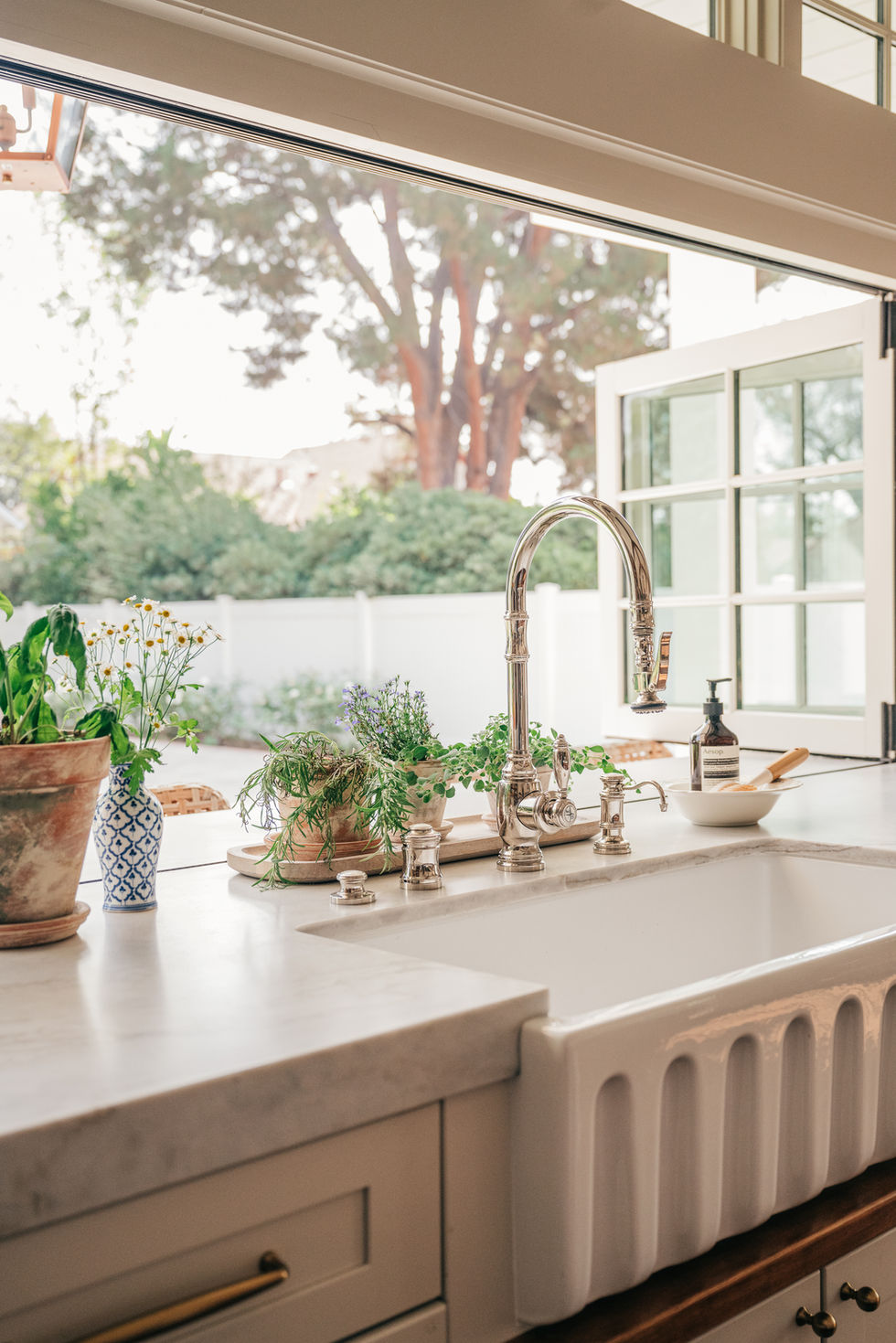 This remodel transformed the cramped, compartmentalized first floor of a historic carriage house into an open, connected living space tailored to the needs of a growing family. Swapping the original kitchen and dining footprints allowed for a more functional layout, and in the process, gave the kitchen room to shine as the true heart of the home. Anchored by a 14-foot bifold window and pass-through bar that opens to the garden, the space is layered with leathered quartzite countertops, vintage art, and collected flea market finds - each detail chosen to honor the home’s past while supporting the rhythms of modern-day life.